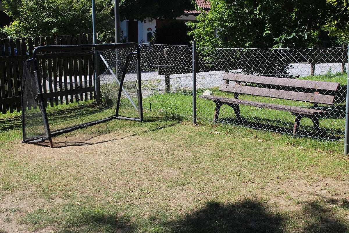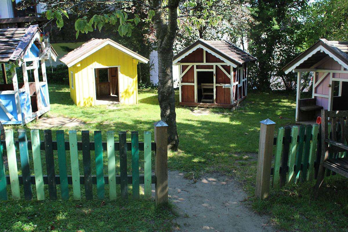 Durch ein Tor teilt sich unser Garten in zwei Bereiche, wodurch sowohl unsere Kindergartenkinder als auch unsere Krippenkinder einen eigenen Außenbereich haben.