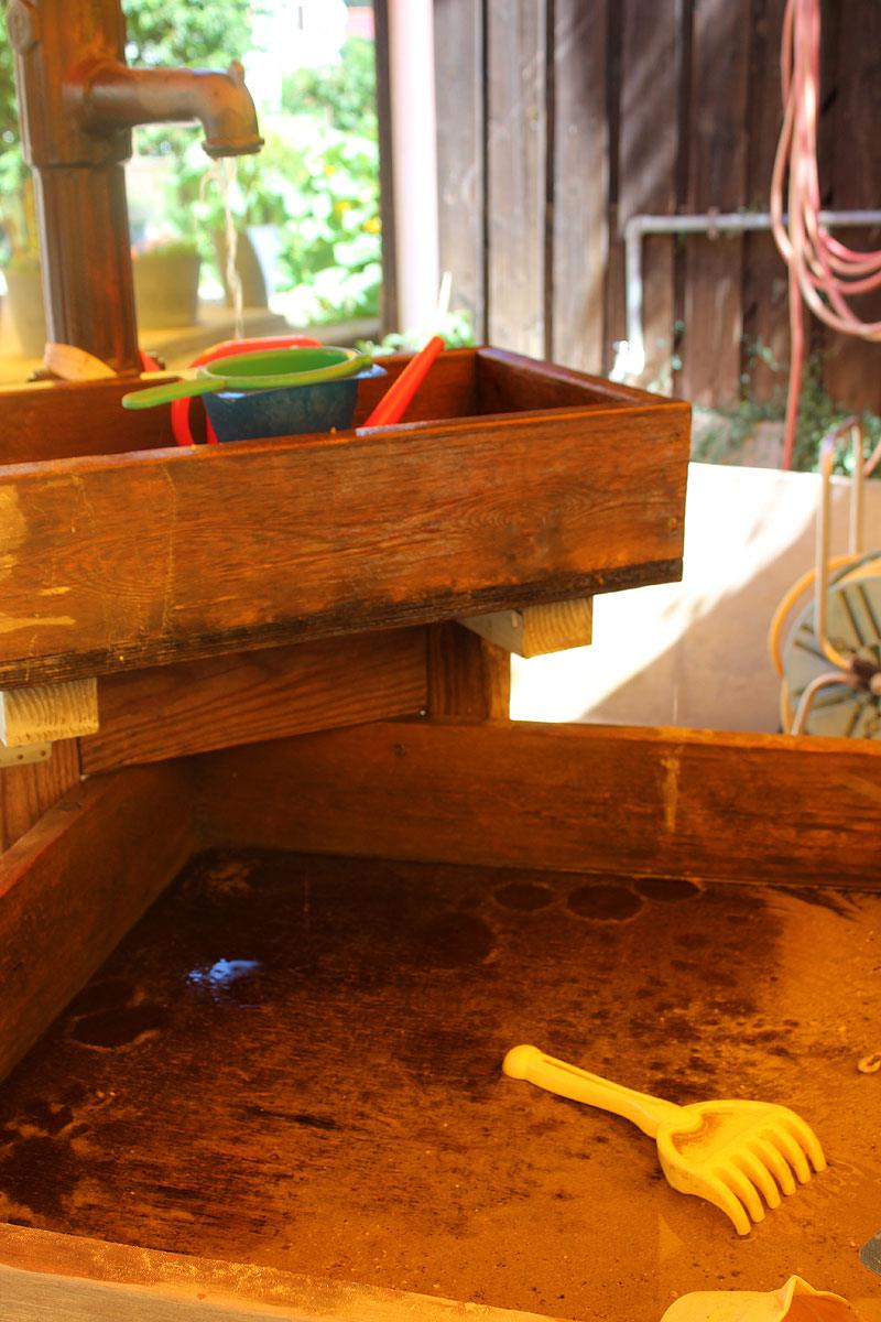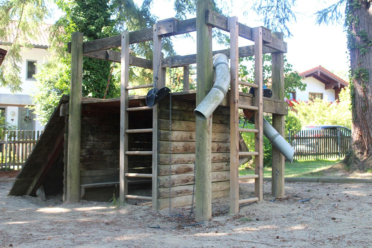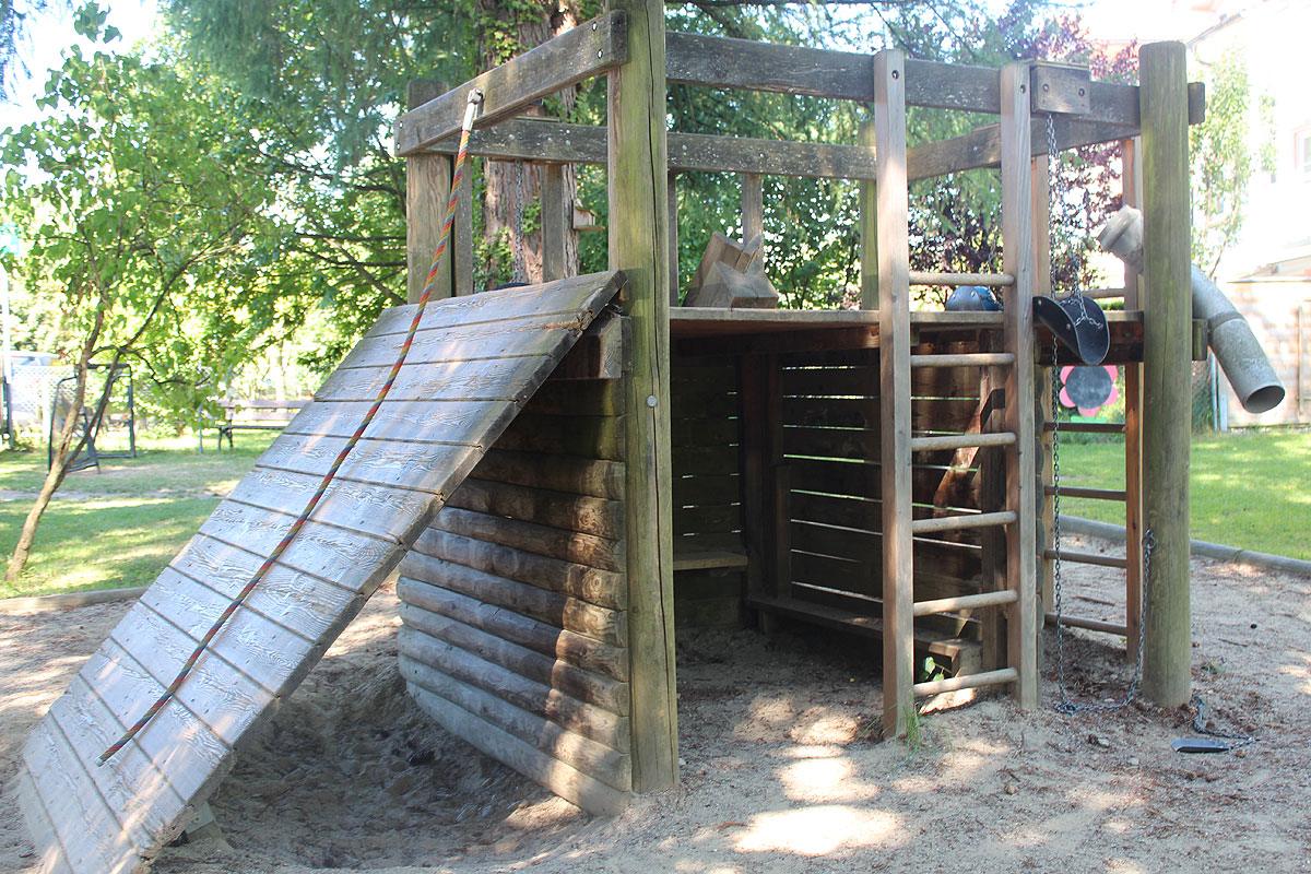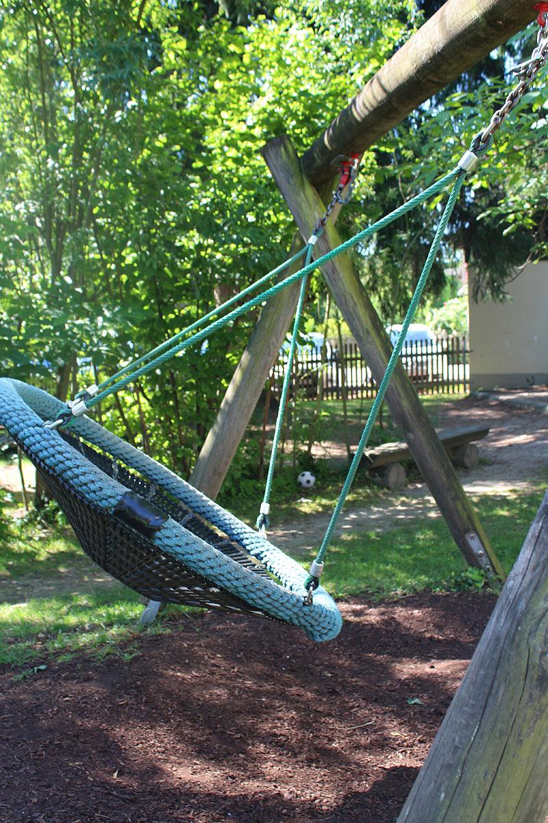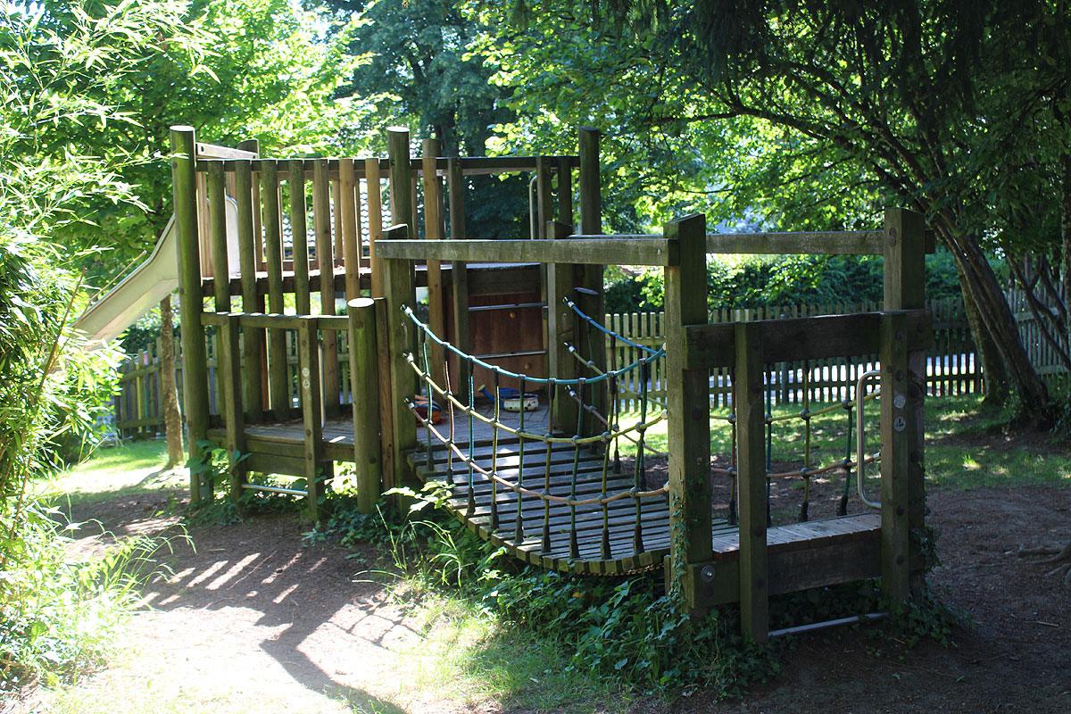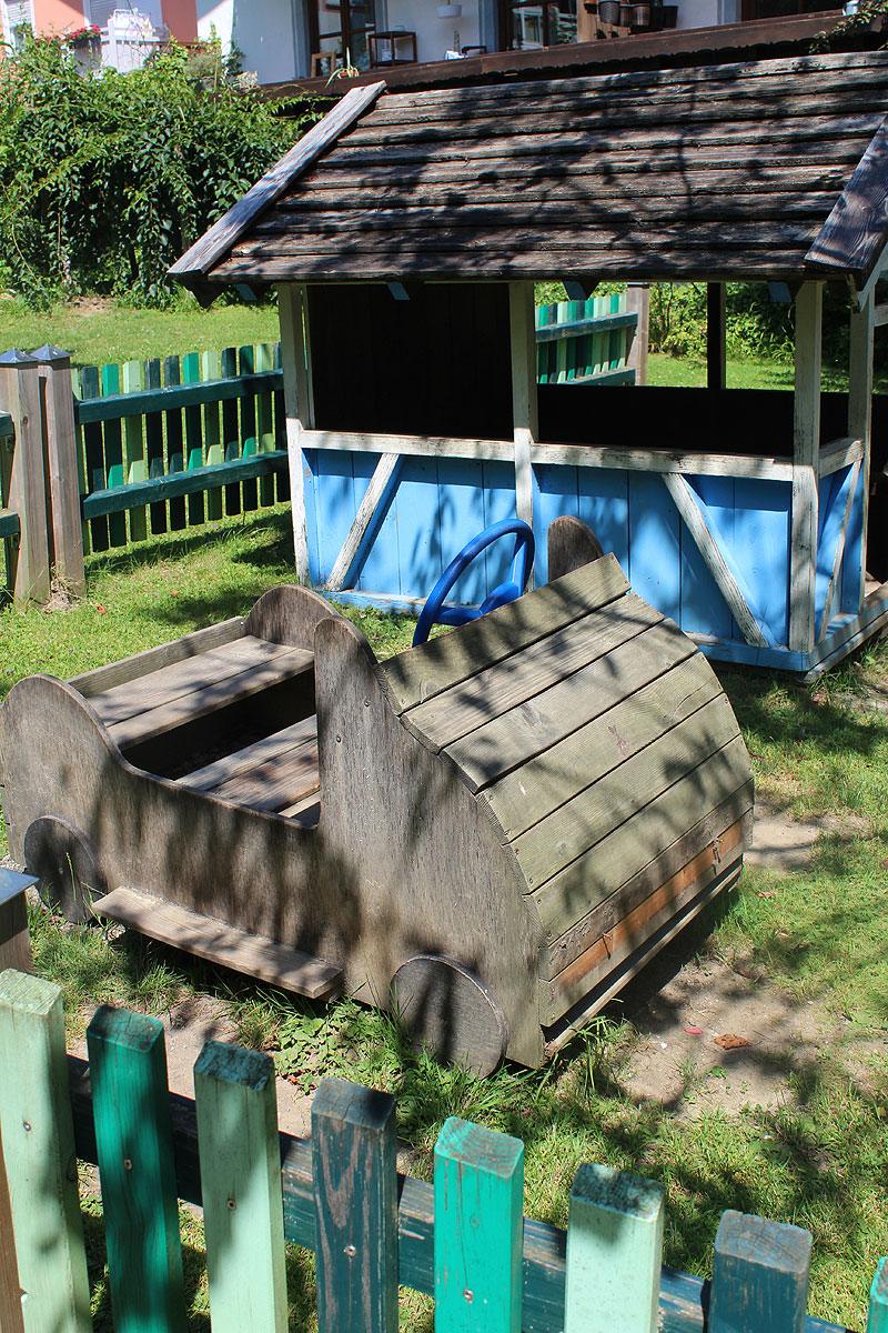 Im Kindergartenbereich laden Spielgeräte wie eine Hängebrücke mit Rutsche, ein Kletterturm und ein Karussell zum Bewegen, Toben und Spielen ein. Im Sandkasten mit vielen verschiedenen Spielmaterialien, Lastwagen, Bagger, etc. können tiefe Löcher, große Burgen etc. gebaut werden. Zudem bieten unsere Fahrzeuge sowie verschiedene Angebote wie Pedalos, Hüpfpferde, Steckenpferde, etc. die Möglichkeit sich auszuprobieren und den eigenen Bedürfnissen nachzugehen.