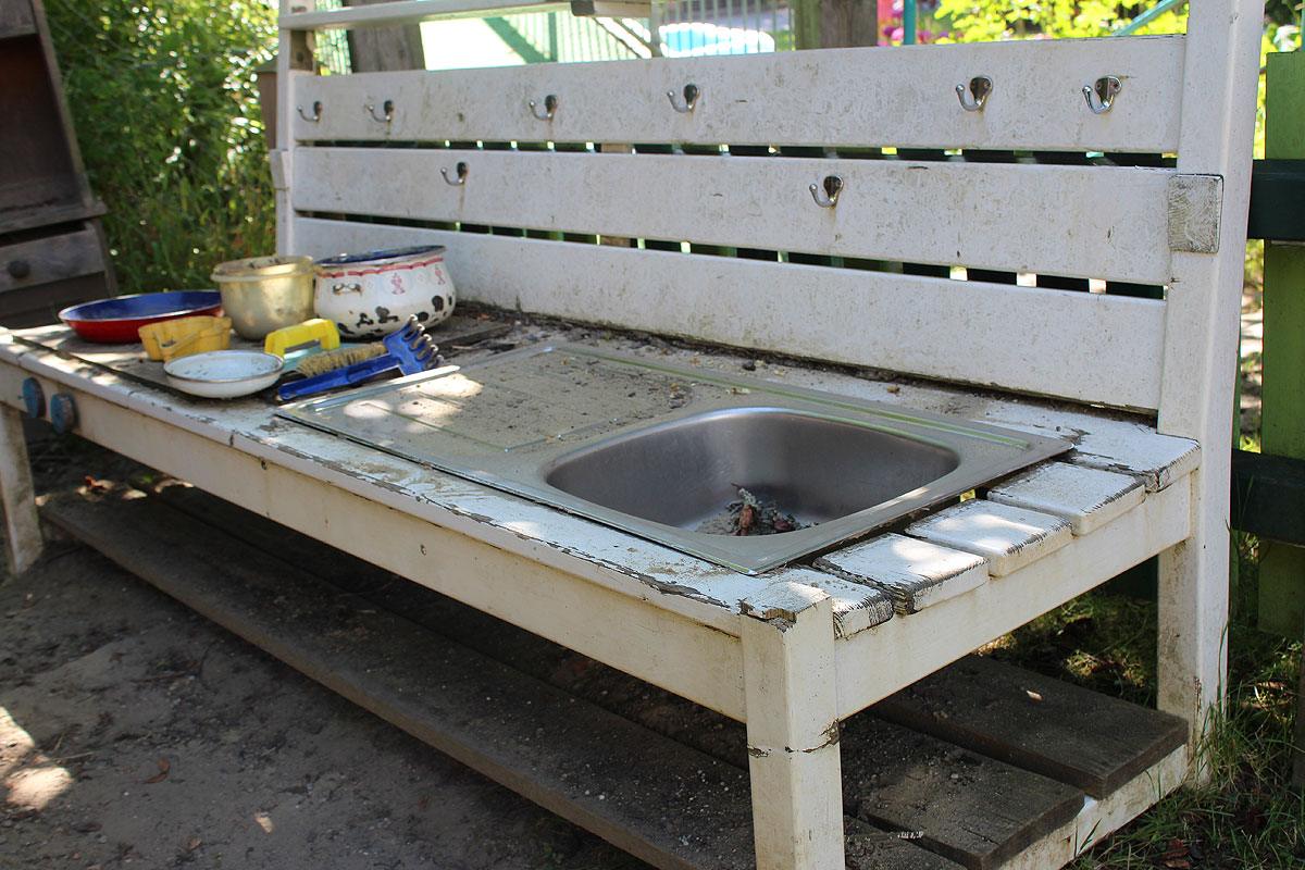 Unsere Krippenkinder haben so in einem geschützteren Rahmen die Möglichkeit den Sandkasten, unsere Rutschen sowie die Schaukel zu erkunden und zu bespielen. Auch Fahrzeuge wie Bobbycars, Dreiräder oder Motorräder sind hier zu finden und werden ausgiebig genutzt. Ein Spielhäuschen und unsere Matschküche laden unsere kleinsten Zwerge zum Kochen, Matschen und Spielen ein.